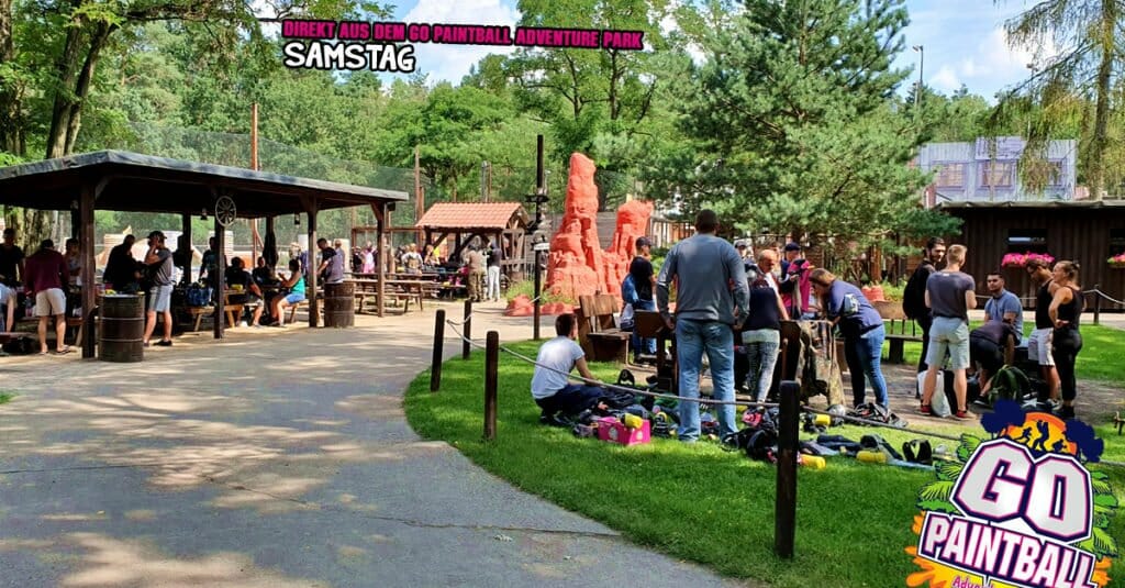 perfektes Wetter und 30 Grad. Paintball ist angesagt im Go Paintball Adventure Park. Trotz der Ferienzeit ist der Park sehr gut gefüllt und das bedeutet reichlich Mitspieler, reichlich Spaß ist angesagt und ordentlich Farbe muss verschossen werden. Gesagt und getan. Das Team rotiert wie gewöhnlich, um für jeden da zu sein und bei jedem Problem die Lösung zu sein.