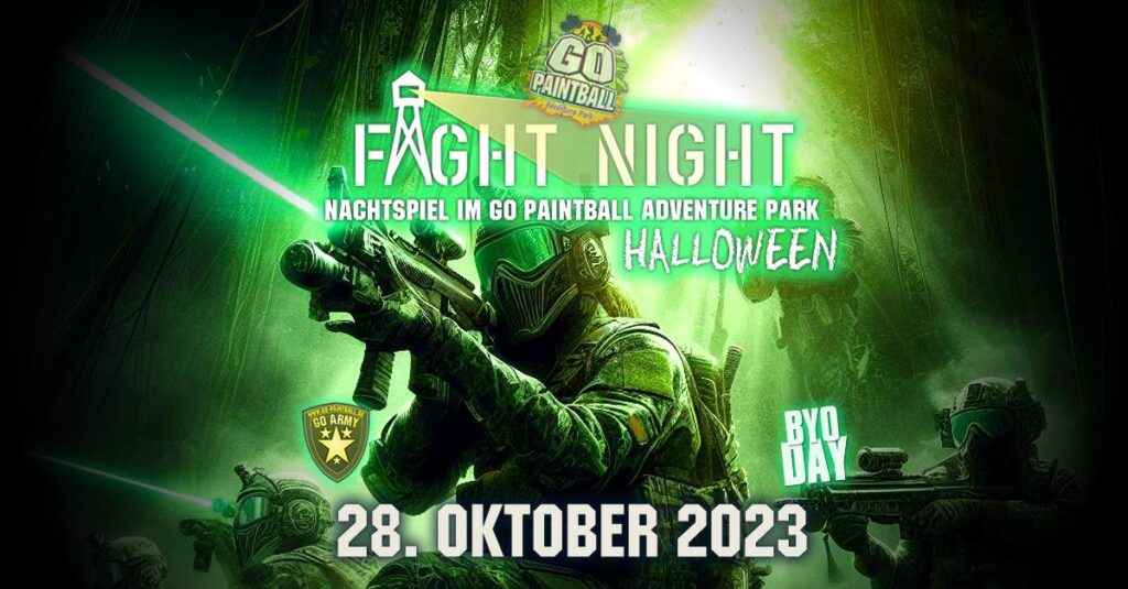 Wir bedanken uns für den wundervoll bunten Tag mit euch. Kommt alle gut nach Hause, schaut bald wieder rein und denkt daran: Am 28.10.2023 ist FIGHT NIGHT angesagt. Also Nachts Paintball Spielen bis 22 / 23 Uhr. Wir haben ebenfalls wieder eine frische Palette Nacht-Paintballs und auch wieder eine begrenzte Stückzahl an Night Loader und Night-Loader in der Version 6.0.