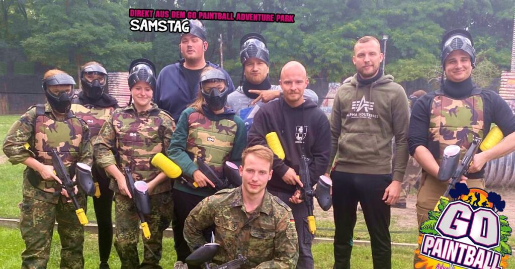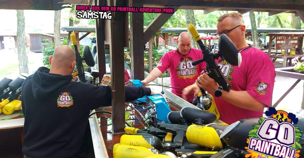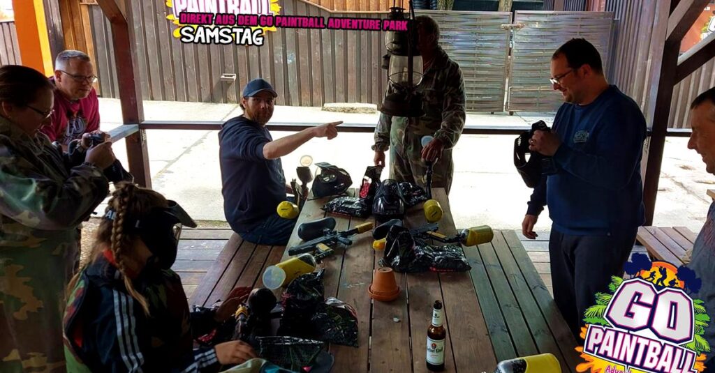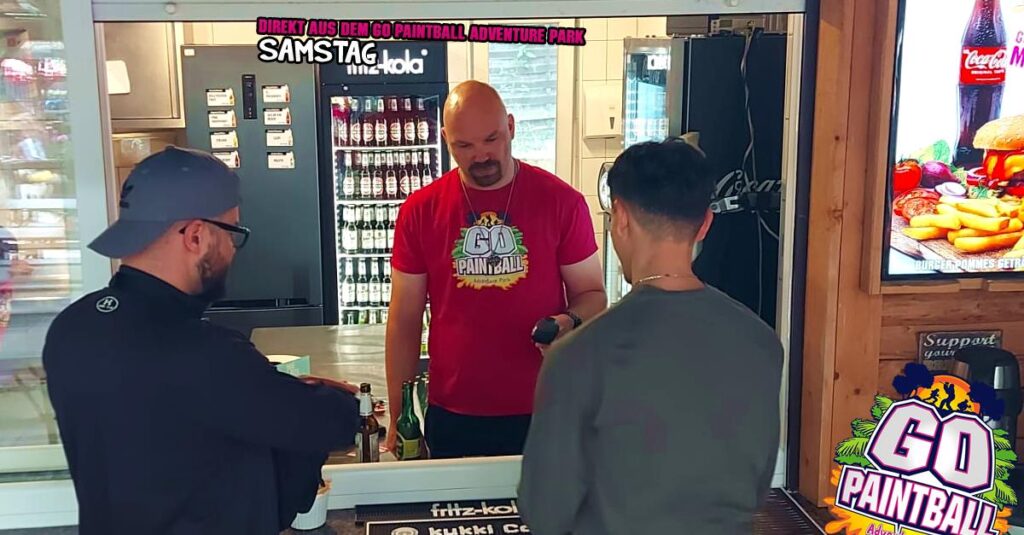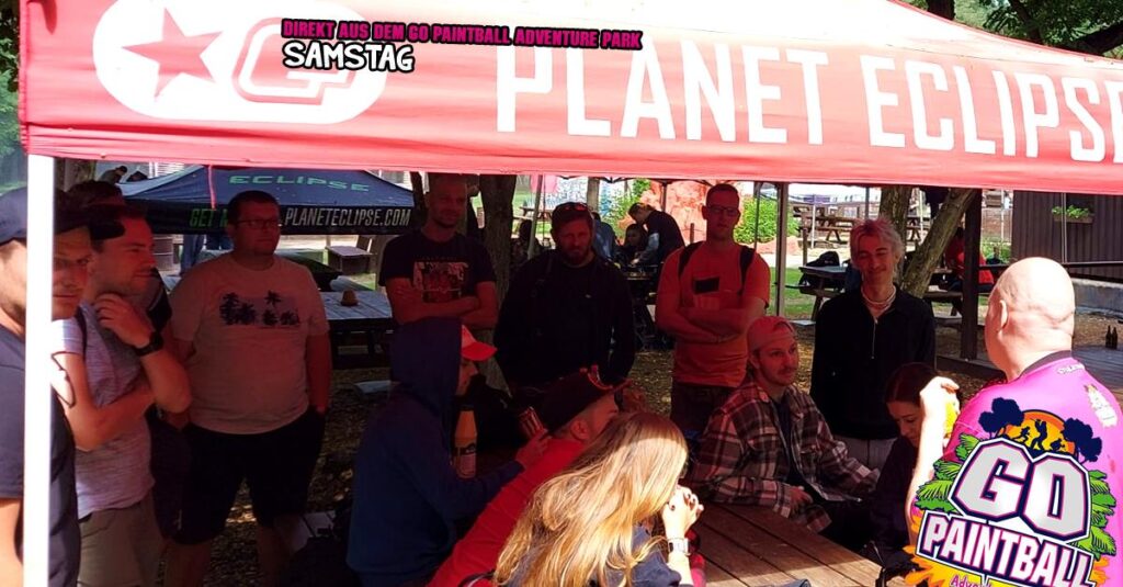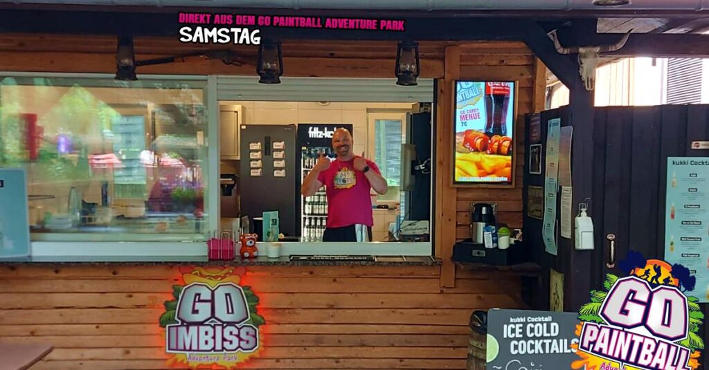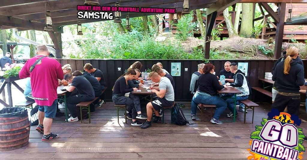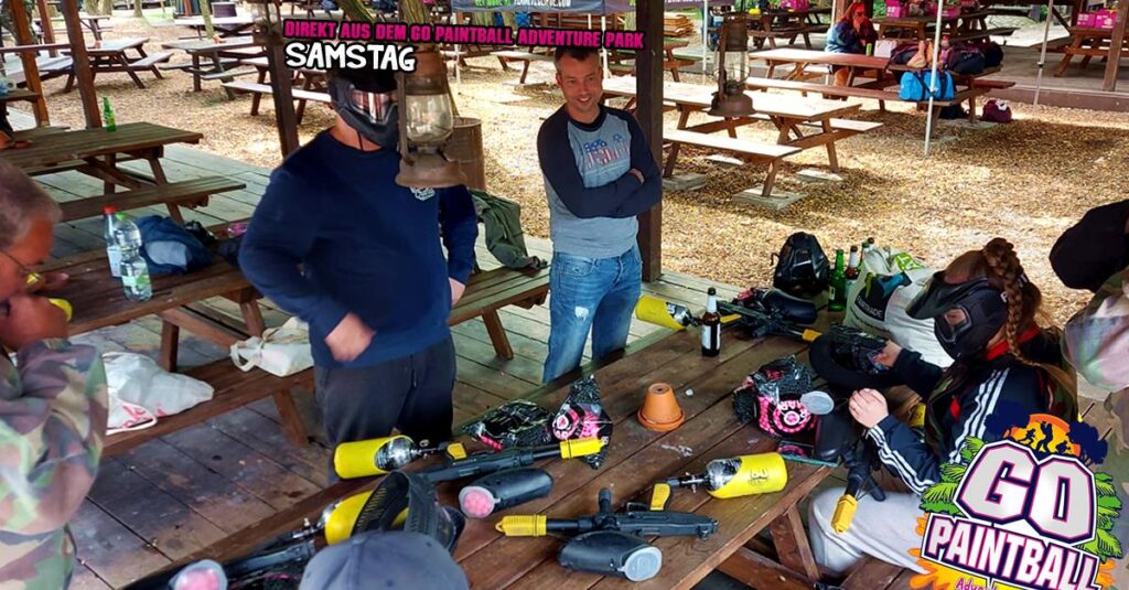 was ist das???!!! Regen?! Ach da zog nur eine kleine „Husche“ über den Park, die schnell wieder verschwunden war und damit war Bahn frei für einen geilen Tag mit Paintball Action angesagt. Bunte Farbe verteilen auf Freund und Feind und dazu noch schnell bei Steven im GO IMBISS Pommes mit Burger oder Currywurst nachtanken.