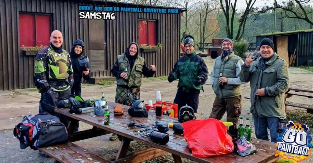 Wir bedanken uns bei euch allen für den geilen Tag an der frischen Luft. Wir wünschen euch eine gute Heimreise und hoffen, dass die „bunte“ Therapie euch geholfen hat. Wer sich noch etwas schlapp und seelisch ausgelaugt fühlt und wieder aufgebaut werden muss, für den sind wir auch morgen wieder da! Bis bald euer Go Paintball Team