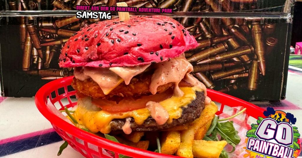 Die Küchen-Crew um unseren neuen Küchenchef Elli, auch bekannt als Elvis, tüftelt gerade an einem neuen GO BURGER. Die Farbe stimmt schon mal! Auf dem Burger finden sich ein Crispy Chicken Patty und ein 100% Beef Patty, dazu jede Menge Käse, Gemüse und Pommes. Ich sage nur: Burger Pommes auf die Eins…! Wie sollte euer Mega Burger aussehen? Was sollte drauf sein? Was wünscht ihr euch? Schreibt es in die Kommentare.