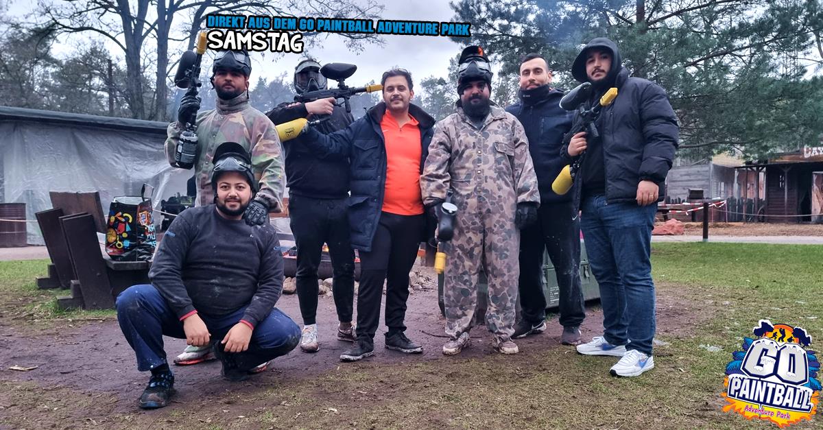 Paintball ist wieder angesagt im GO PAINTBALL ADVENTURE PARK. Das Wetter ist trocken und gefühlt mild, trotzdem haben wir für alle Frostbeulen das Lagerfeuer am Start zum Aufwärmen. Im GO IMBISS gibt es heute endlich Pommes UND berliner Curry-Wurst. Lecker!