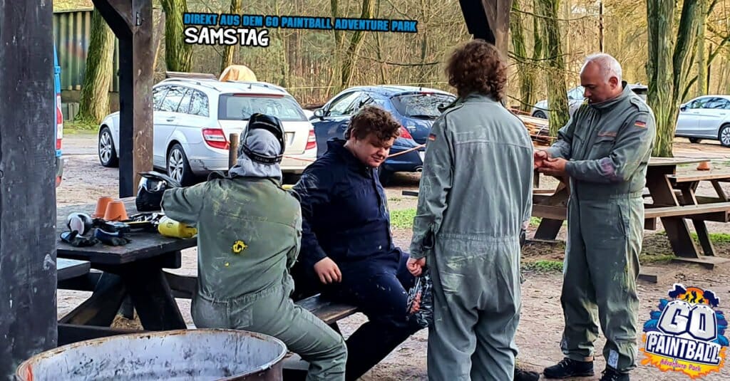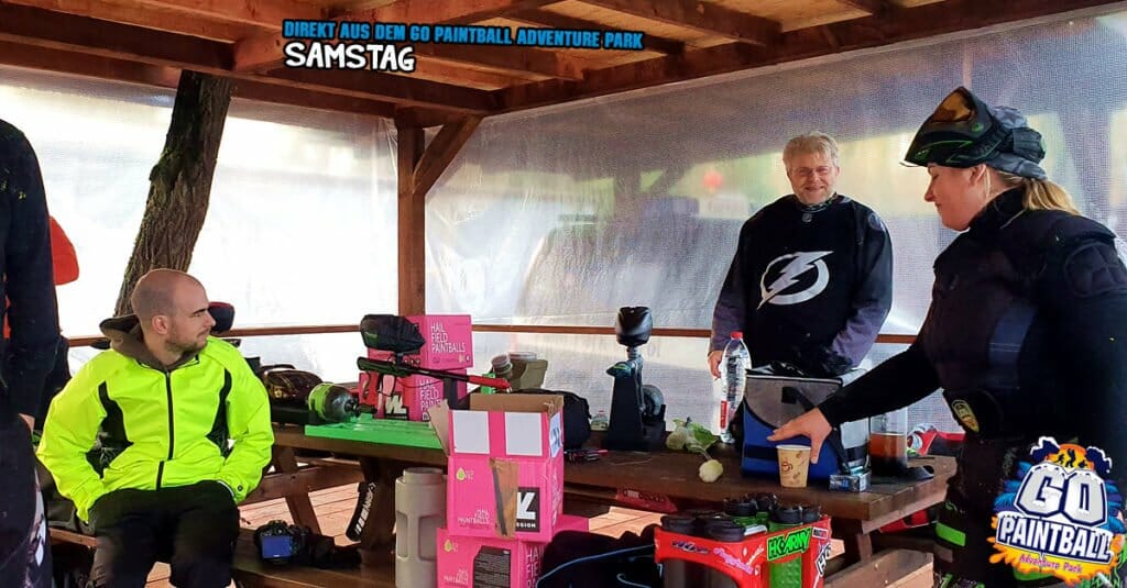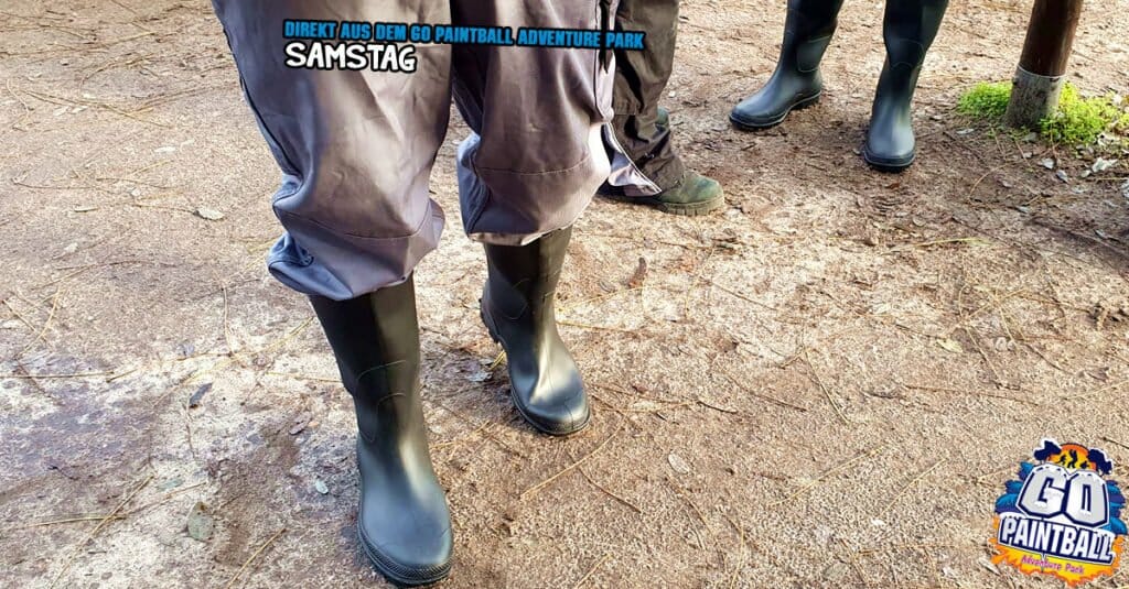 eigentlich war heute von den Temperaturen her gutes Wetter für Paintball. Leider war es in den letzten Tagen auch sehr feucht und daher hatten manche Gäste eine gute Idee gehabt und einfach in Gummistiefeln gespielt. Für ein paar Euros ist das immer eine gute Investition und hält die Füße sauber und trocken. Wir hatten heute trotzdem den ganzen Tag das Lagerfeuer am Brennen, damit man sich falls nötig aufwärmen kann. Auch der Kälteschutz befindet sich nun an zwei Pavillons und natürlich an der Anmeldung und am GO-Imbiss. Wir sorgen uns halt um euch und möchten, dass ihr einen guten Tag bei uns habt.