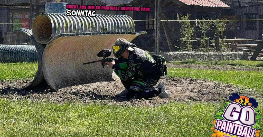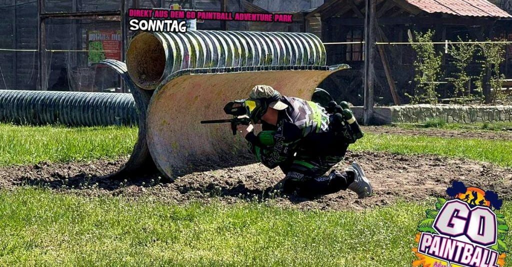 perfektes Wetter im GO PAINTBALL ADVENTURE PARK war angesagt. Blauer Himmel und herrliche Grade um 25 herum. Besser geht es nicht. Es fühlt sich an, wie früher…