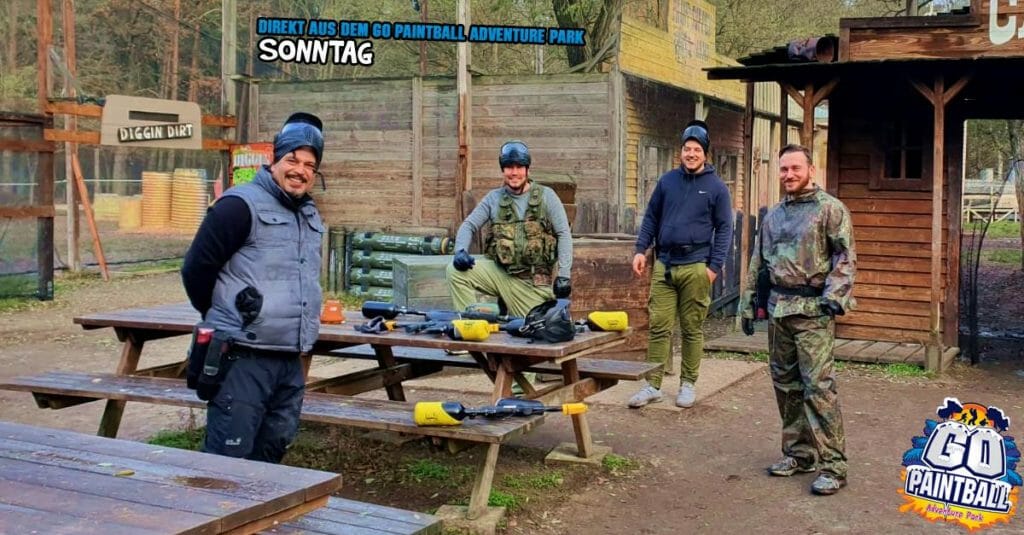 Paintball am Sonntag im Go Paintball Adventure Park ist angesagt. Ganz oben auf der 2DO Liste steht: „Spaß haben!“ -Check! Danach folgt: „Mit den guten Freunden mal etwas Zeit verbringen!“ – Check! Ein weiterer Punkt ist: „Den müden Körper in Schwung bringen!“ -Check! Ein weiterer Punkt: „Ein paar alte Rechnungen begleichen!“ -Check?! Wir wissen ja nicht, was ihr noch so alles auf eurer Liste hattet, aber Spaß haben und Zeit mit Freunden verbringen stand wohl bei jedem drauf!