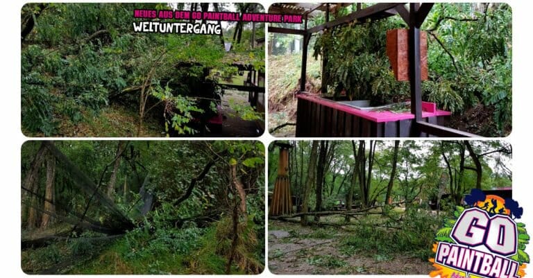 Hallo liebe Gäste, das sind wahre Paintballer! Kurz nach dem Sturm besuchten uns diese mutigen Spieler. Der halbe Park war verwüstet. Es regnete immer wieder,
