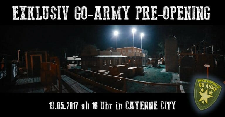 Hallo liebe Rekruten der Go-Army, am 19.05.2017 wird das neue Spielfeld CAYENNE im GO PAINTBALL ADVENTURE PARK eröffnet. Alle Mitglieder der GO ARMY sind exklusiv
