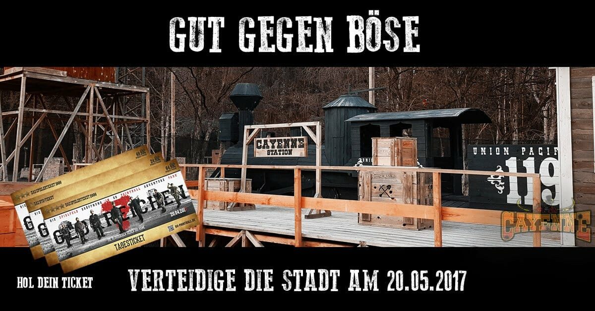 Sei dabei und verteidige die Stadt mit den glorreichen Sieben oder schließe dich den Bösen an und versuche die Westernstadt CAYENNE zu erobern. Das Event ist limitiert! Teilnahme nur mit Tickets aus dem Vorverkauf ab sofort!