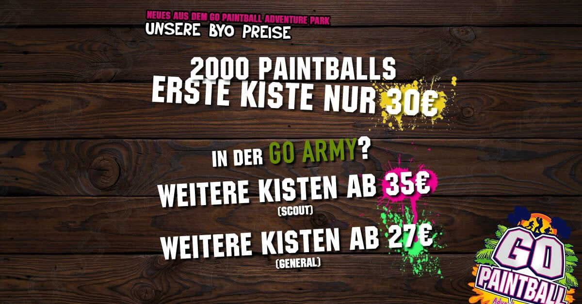 Die PREISE FÜR MITGLIEDER DER GO ARMY findet ihr noch einmal hier: https://www.go-paintball.de/preise/go-bonussystem/