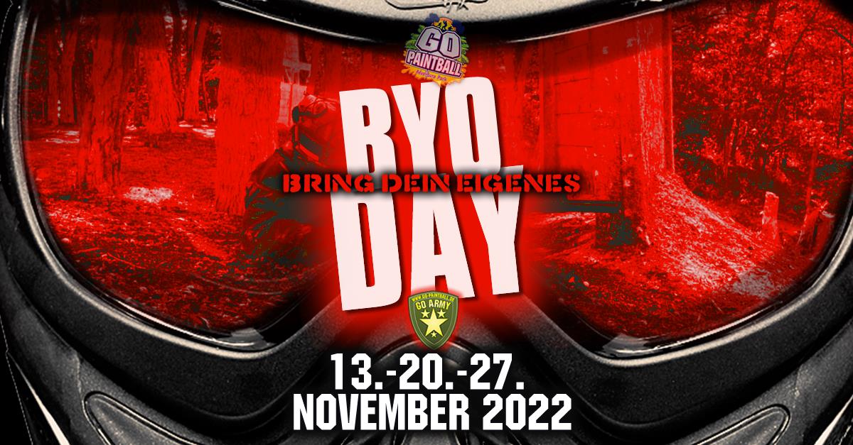 Am 13., 20. und 27. November 2022 veranstalten wir wieder den BYO Spieltag. Ihr könnt eure eigenen Paintballs mitbringen. Wir bitten aber darauf zu achten, dass diese Paintballs zu 100 % biologisch abbaubar sind und auch nicht bleibend färben. Das alles bedeutet, dass ihr lediglich 35 € Eintritt für Luft und BYO habt.