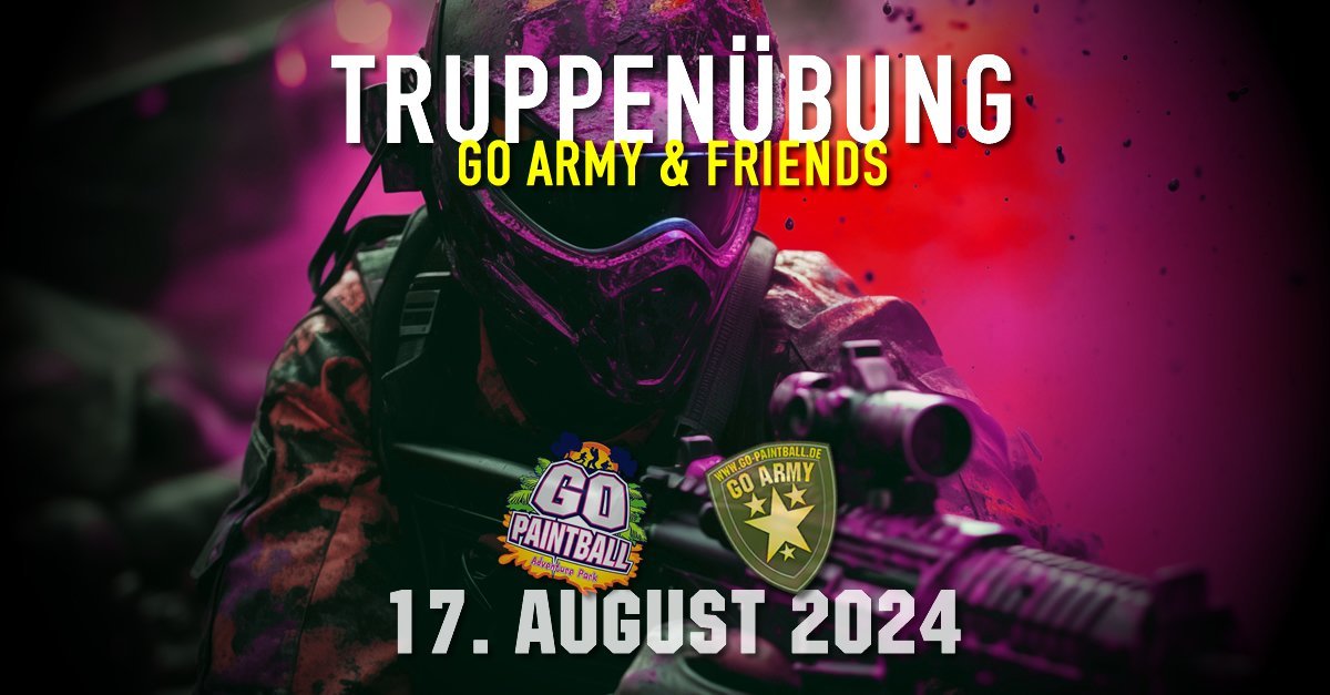 🌟 Mission „Ultimative Paintball-Herausforderung“ steht an! Am 17. August 2024 verwandelt sich der GO PAINTBALL ADVENTURE PARK zum Schauplatz des legendären GO ARMY MANÖVERTAGS. Rüstet euch aus für das intensivste und farbenprächtigste Schlachtfeld eurer Karriere.
