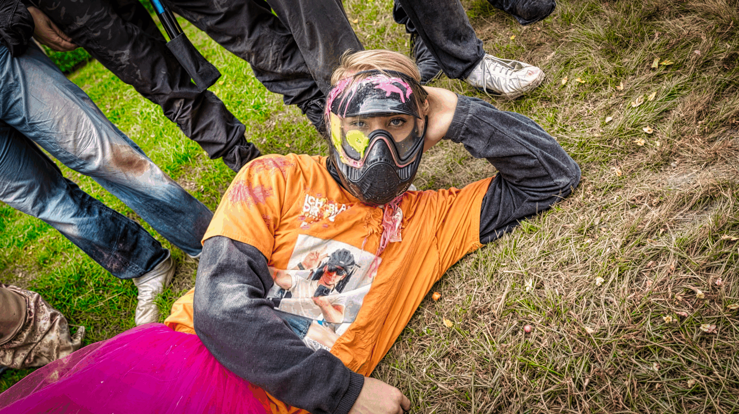 Paintball ist grundsätzlich ungefährlich, da alle Spieler während des Spiels immer eine Schutzmaske für Augen und Ohren tragen. Zusätzlichen Schutz für die Finger bieten Handschuhe, die mitgebracht oder vor Ort ausgeliehen werden können.