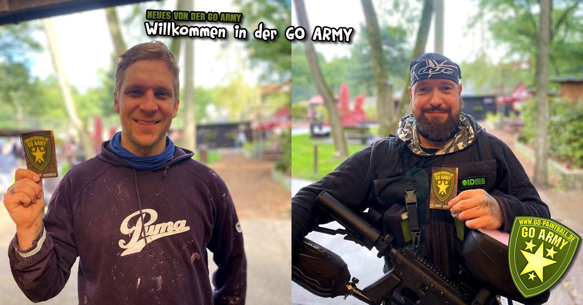Wir begrüßen heute Peter G. und Daniel S. als neue Mitglieder der GO ARMY. Sie haben sich unserem Team angeschlossen und sind bereit für aufregende Paintball-Abenteuer. Willkommen im Team! Gemeinsam werden wir spannende Herausforderungen meistern und jede Menge Spaß haben.