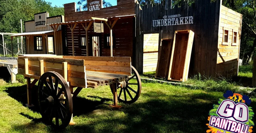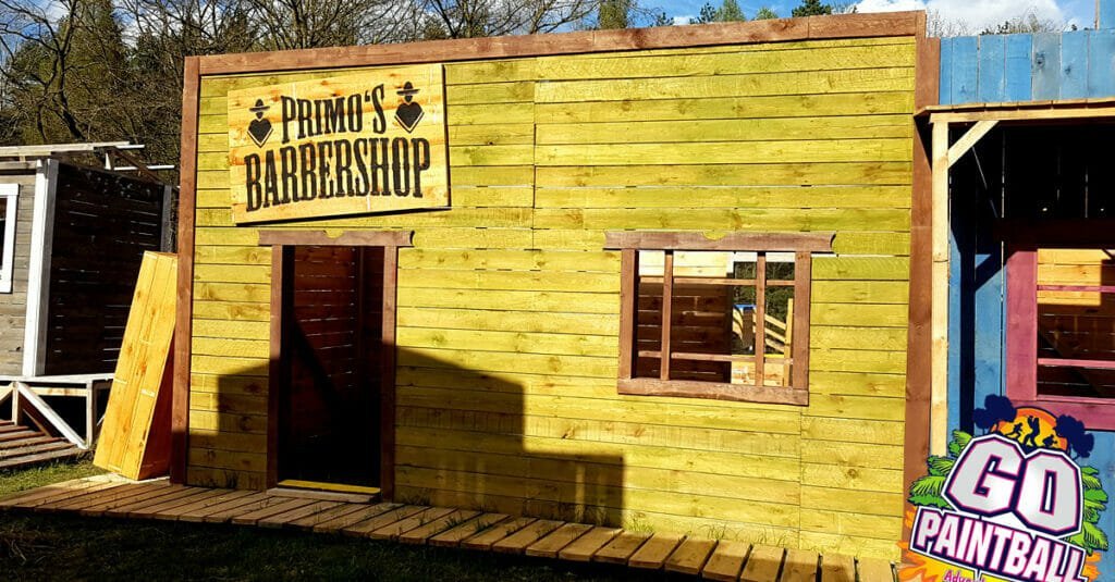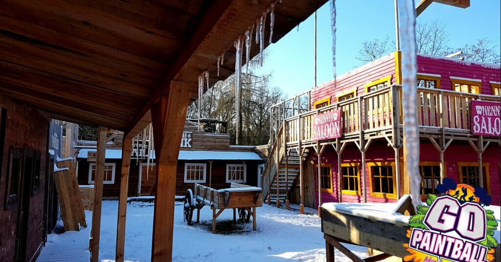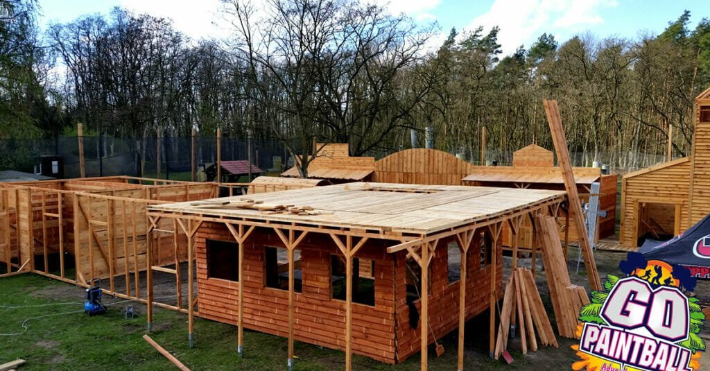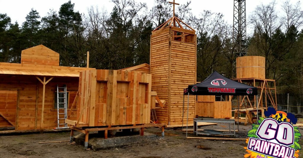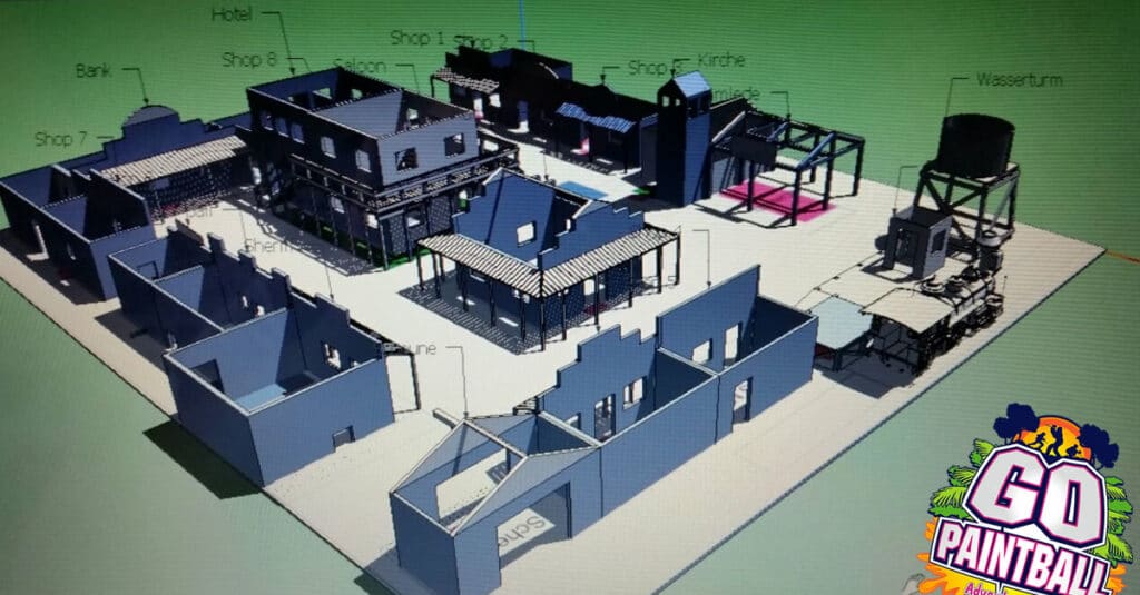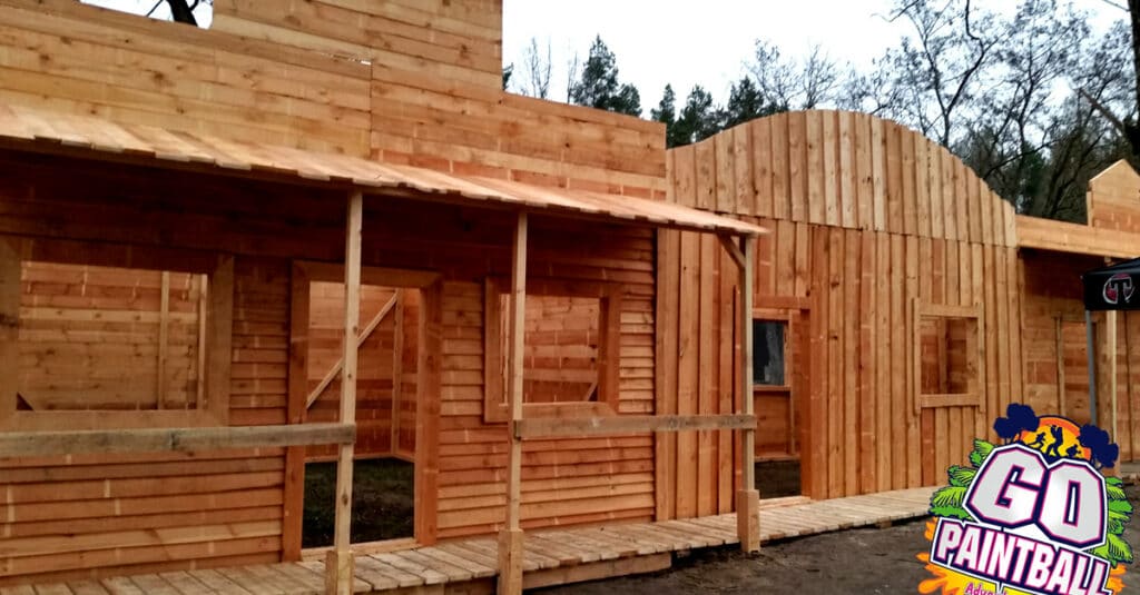 Es folgte die Räumung des alten Spielfeldes, der Radlader planierte alles und losging es mit dem Bau. Ein Haus folgte auf das nächste und nach einiger Zeit war die ganze Stadt fertig. Ein Baustopp aber sorgte für eine ordentliche Verzögerung und ein Jahr später war dann doch alles fertig. Jedes Haus gestrichen, mit einem Geschäftsschild versehen, Licht, Sound und Strom installiert und bereit für das erste Spiel. Nun steht die Westernstadt Cayenne im Go Paintball Adventure Park und wird von unseren Gästen ordentlich umlackiert. Wir freuen uns schon auf das nächste große Projekt, die Überarbeitung des Spielfeldes „Fortress“. Die Planung dazu haben begonnen…