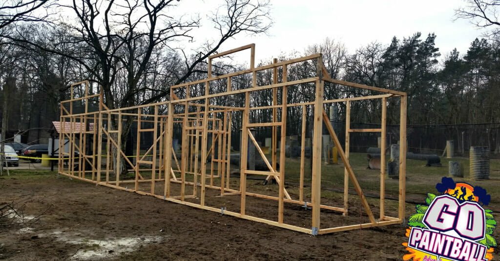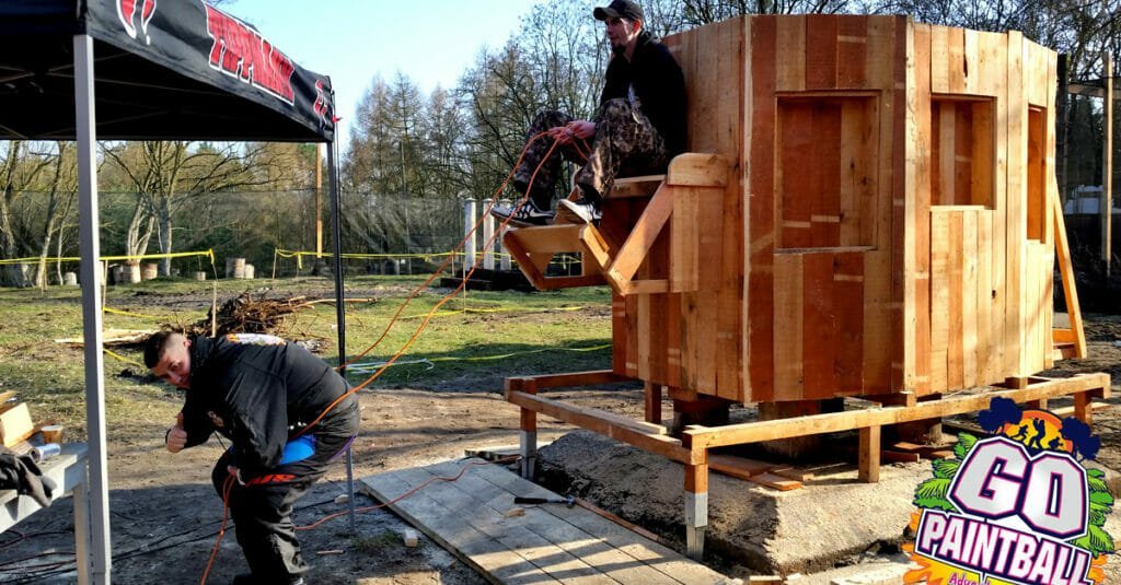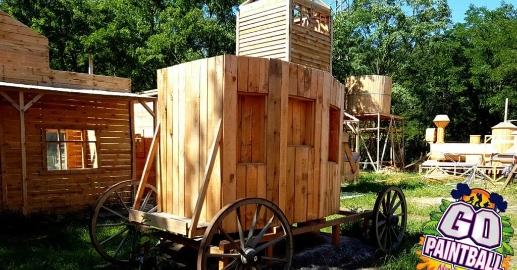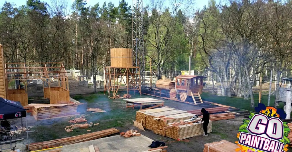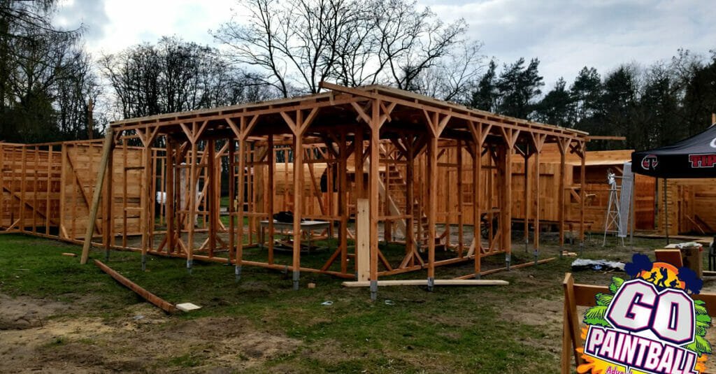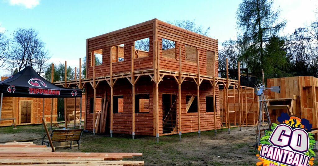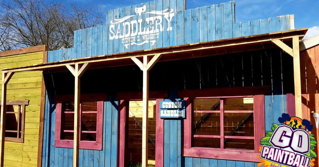 Es folgte die Räumung des alten Spielfeldes, der Radlader planierte alles und losging es mit dem Bau. Ein Haus folgte auf das nächste und nach einiger Zeit war die ganze Stadt fertig. Ein Baustopp aber sorgte für eine ordentliche Verzögerung und ein Jahr später war dann doch alles fertig. Jedes Haus gestrichen, mit einem Geschäftsschild versehen, Licht, Sound und Strom installiert und bereit für das erste Spiel. Nun steht die Westernstadt Cayenne im Go Paintball Adventure Park und wird von unseren Gästen ordentlich umlackiert. Wir freuen uns schon auf das nächste große Projekt, die Überarbeitung des Spielfeldes „Fortress“. Die Planung dazu haben begonnen…